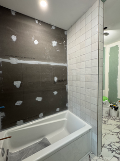 This Jack and Jill bathroom—shared by two small humans—was an opportunity to create something playful, immersive, and full of personality.